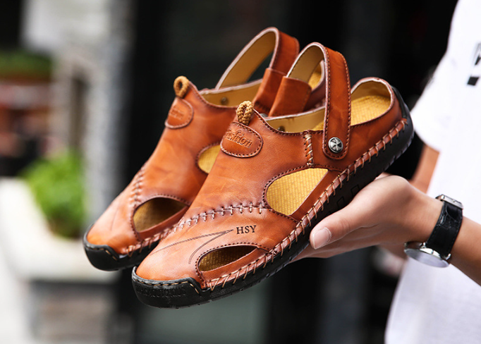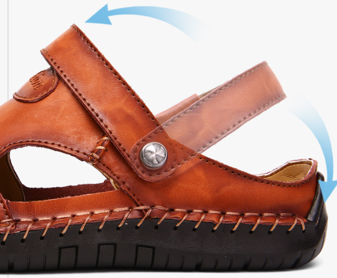 Introducing our Men's genuine calfskin sandals featuring a wide toe box design, perfect for those with wider or fuller feet. Embracing various foot shapes, these genuine calfskin sandals offer ample space for your toes, ensuring maximum comfort with every step. Experience the freedom of movement and style without compromising on comfort.
