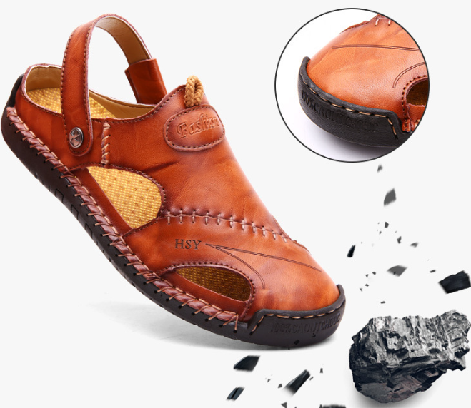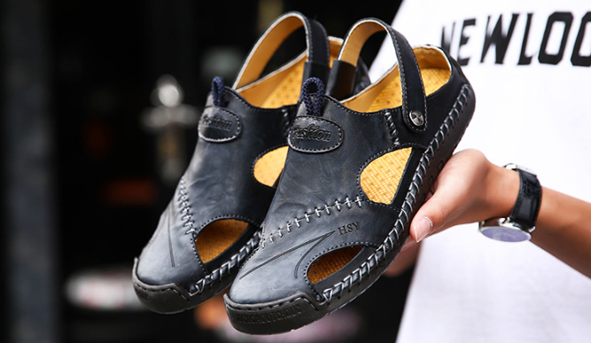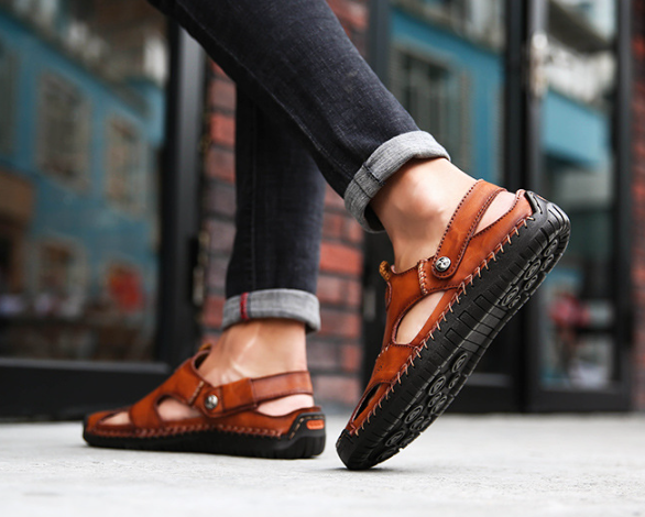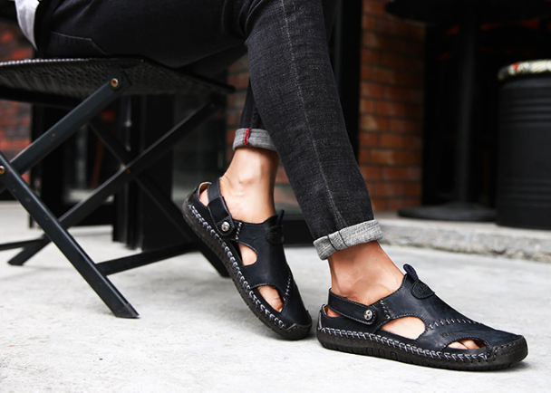 Roomy Design: Men's genuine calfskin sandals with Wide Toe Box