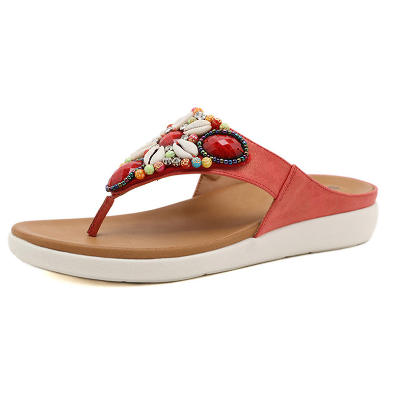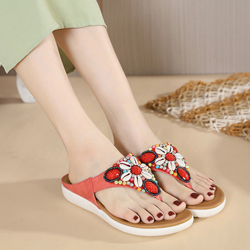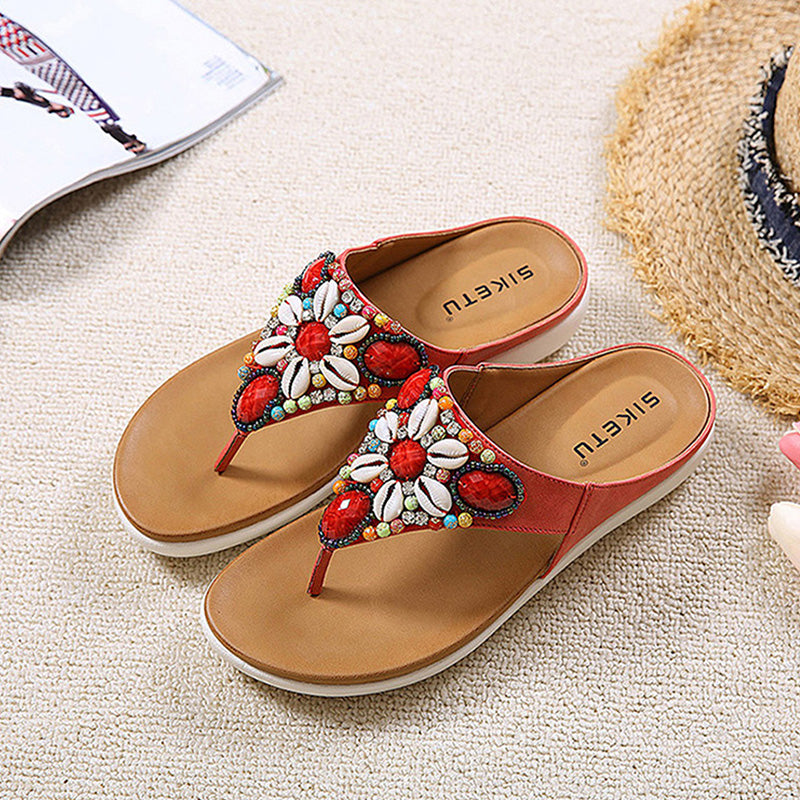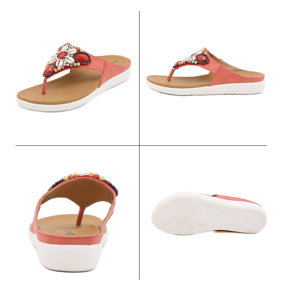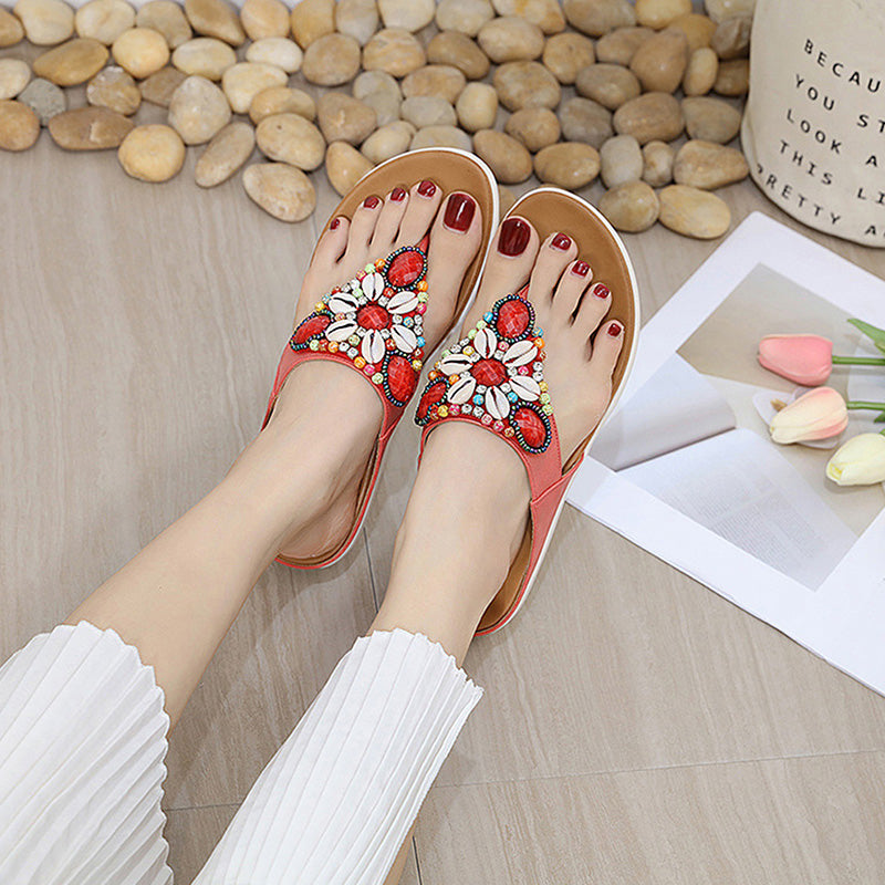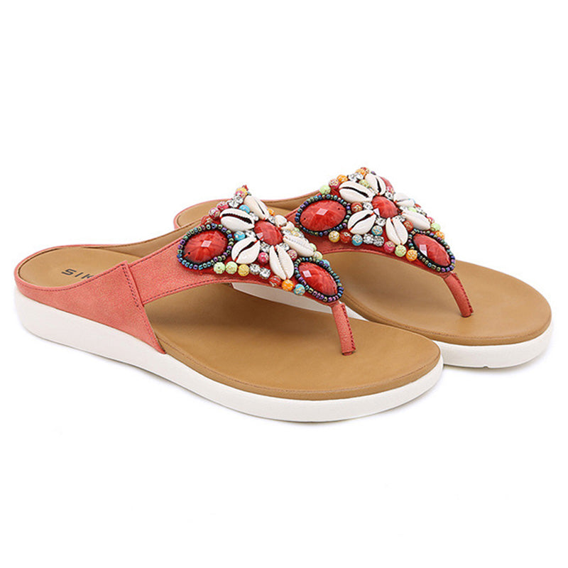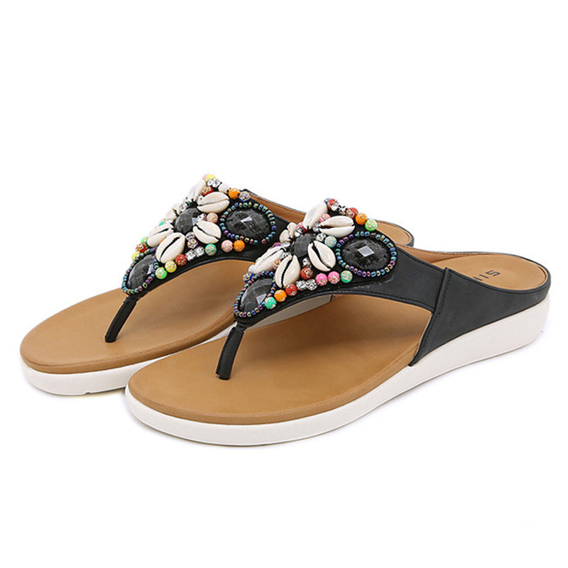 Design:Flip Flops beaded upper flat sandals design, classic and stylish, easy to mach. Slip on design make it easy to take off/on.